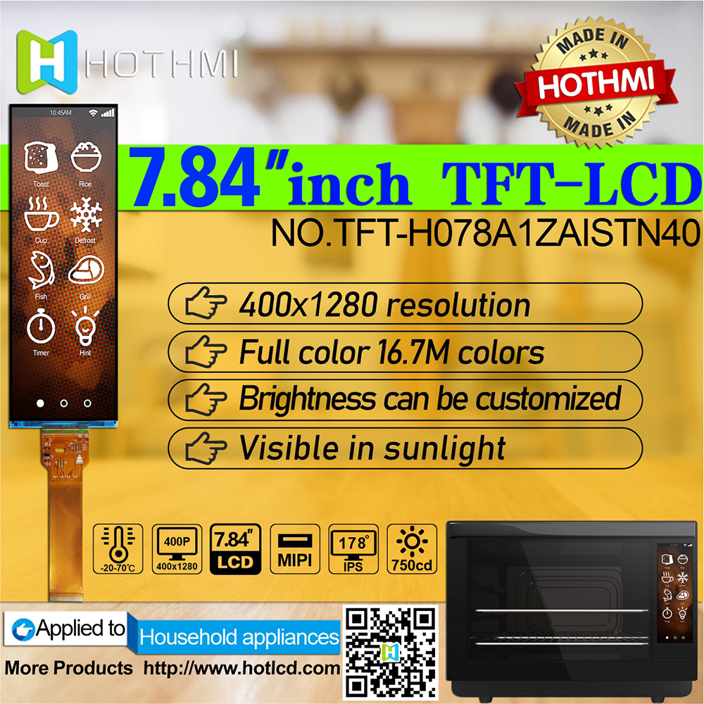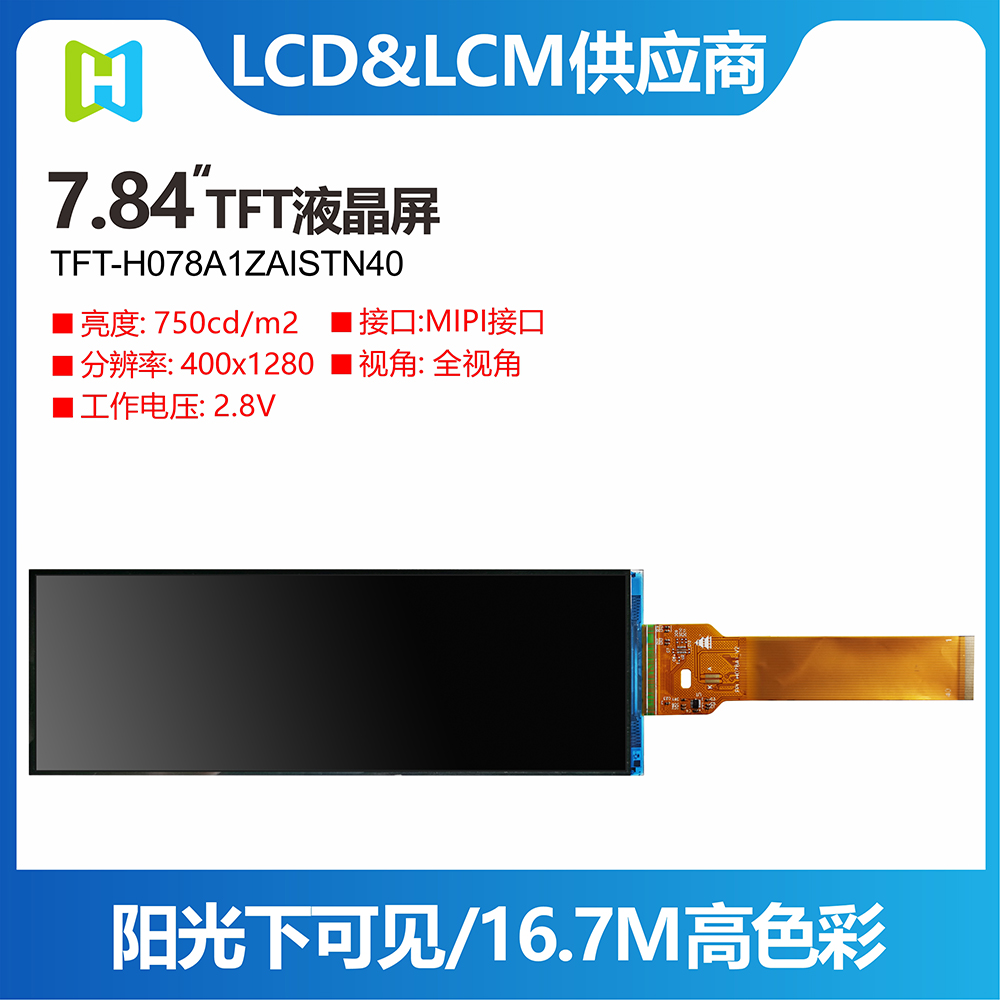 TFT- H078A1ZAISTN40是一款7.84寸采用IPS面板技術(shù)的TFT液晶顯示器模塊。此款TFT-LCD分辨率400 x 1280 pixels。TFT- H078A1ZAISTN40模塊內置ST7703 driver IC,支持MIPI接口,對比度700 (典型值),模塊亮度為700 nits(典型值)。H078A1采用IPS面板技術(shù),視角比TN玻璃更廣范圍為左: 80 / 右: 80 / 上: 80 / 下: 80 度,色彩鮮明,具有飽和自然的優(yōu)質(zhì)畫(huà)面。H078A1模塊的驅動(dòng)電壓為3.3V,平常黑/透射式LCD,霧面玻璃,屏幕長(cháng)寬比3:1。。此款模塊的工作溫度是-20℃ 至 +70℃,儲存溫度是 -30℃ 至 +80℃。如果客戶(hù)產(chǎn)品應用需要使用高亮TFT,可選用TFT- H078A1ZAISTN40模塊,其模塊亮度為700 nits (典型值)。