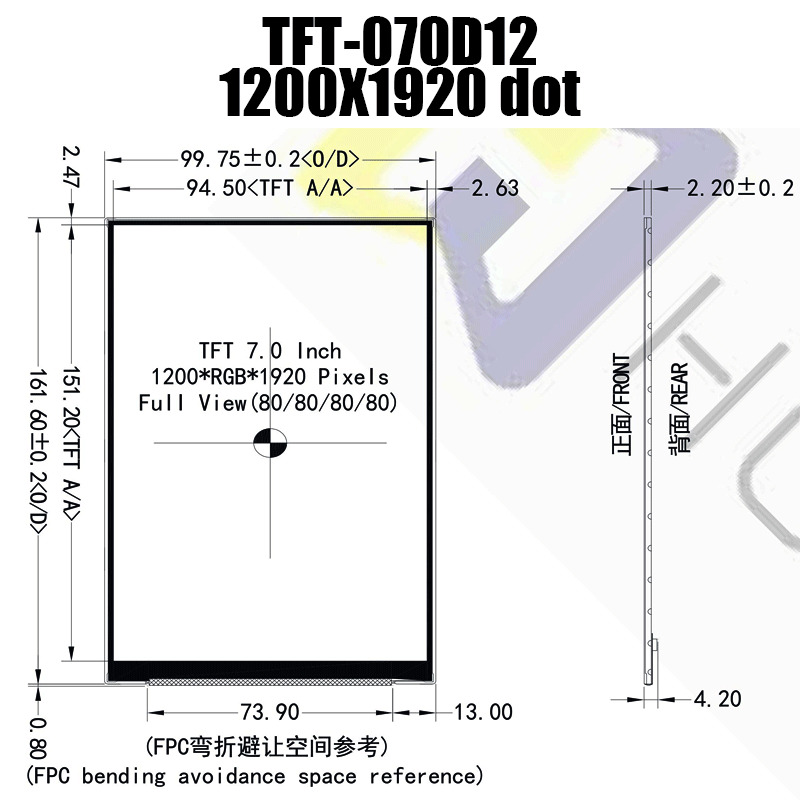 這款 7.0 英寸 TFT LCD 顯示器具有 1200x1920 分辨率的屏幕,采用 IPS 技術(shù),色彩還原更好,圖像一致性更好,任何角度的光學(xué)特性都更好。 為了提供額外保護,這款 24 位真彩色 TFT 。 這款 7.0" 顯示器符合 RoHS 標準,采用 MIPI-4L 接口,不包含觸摸屏。這款 7.0" IPS 顯示器采用相同的機械尺寸和引出線(xiàn)設計,包括與 TN 顯示器相同的 HX8279 驅動(dòng)器 IC,使其成為 TN 型號的兼容替換選項。