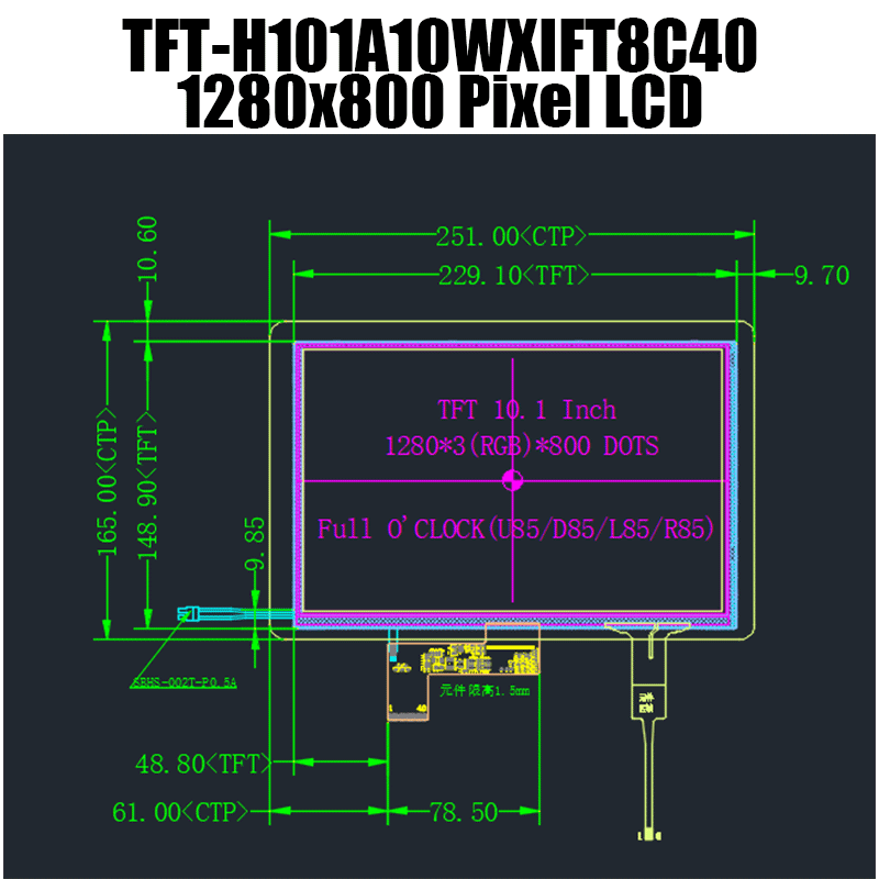 TFT-H101A10WXIFT8C40-LVDS-CTP | 10.1" IPS LCD | LVDS 接口 | 電容式觸摸屏 | EMI 濾波器
