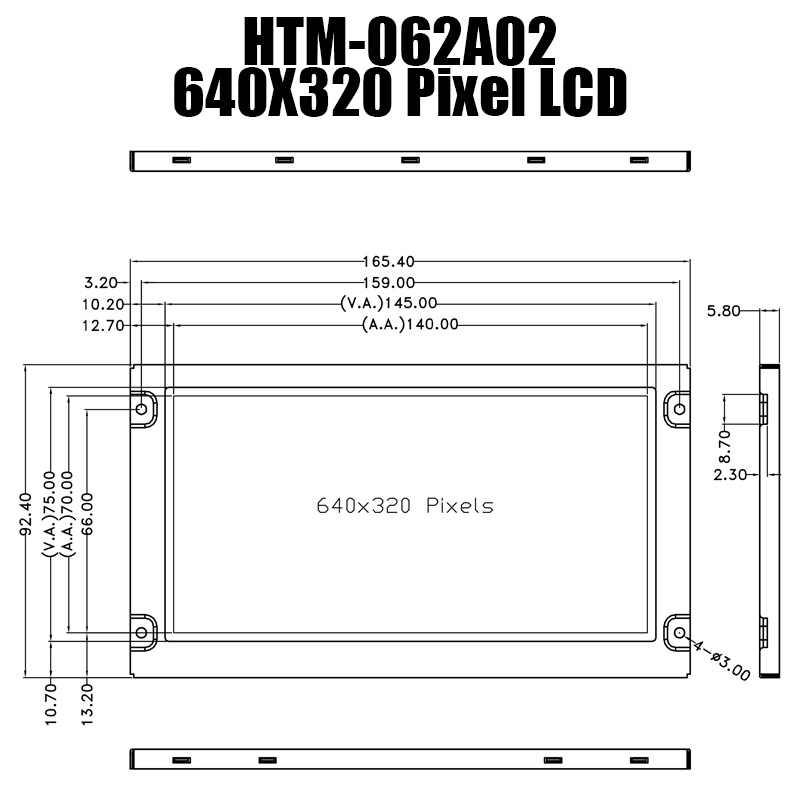 | Number of Pixels | 640(H)* 320(V) | dots | ||