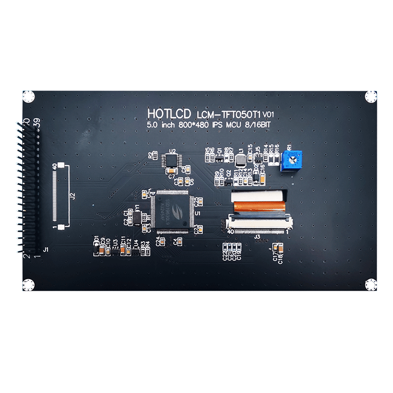 因此,鑫洪泰HOTLCD研發(fā)團隊設計一款方便客戶(hù)使用的MCU8/16位接口的5.0寸高清TFT顯示模塊 LCM-TFT050T1,具有高清800x480分辨率,高畫(huà)質(zhì),全視角,65K/262K真彩色,內置SSD1963控制器,無(wú)需外圍電路即可連接主板(可選配連接器),單電源DC3.3V供電。此款TFT模塊可選配觸摸屏并內置XPT2046電阻觸摸屏驅動(dòng)器。