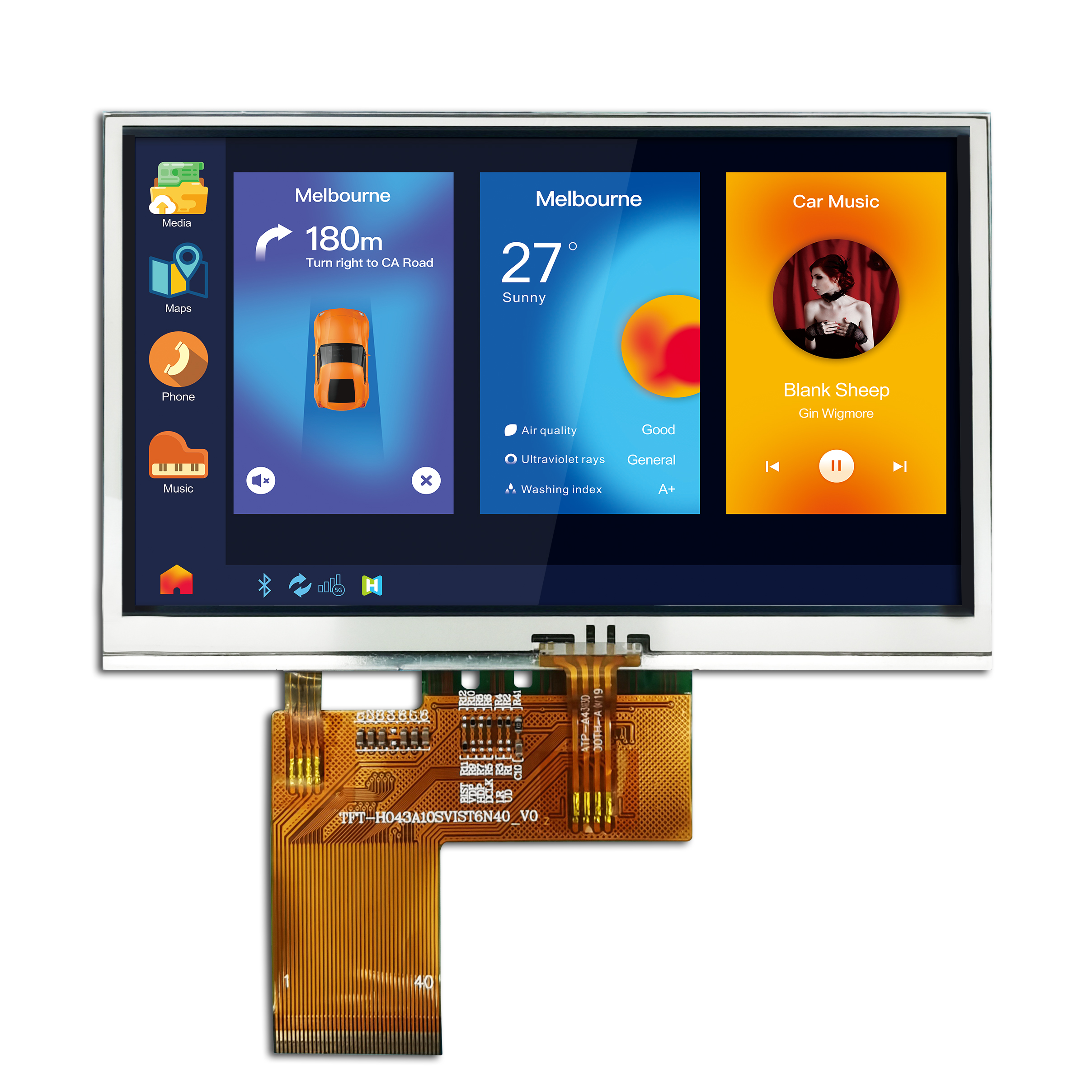 | 4.3寸MCU接口TFT/工控橫屏/800*480分辨率/IPS全視角/TFT-H043A12SVILT5N40 | TFT橫屏 | 800x480 |